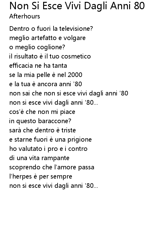 | Song | Non Si Esce Vivi Dagli Anni 80 |