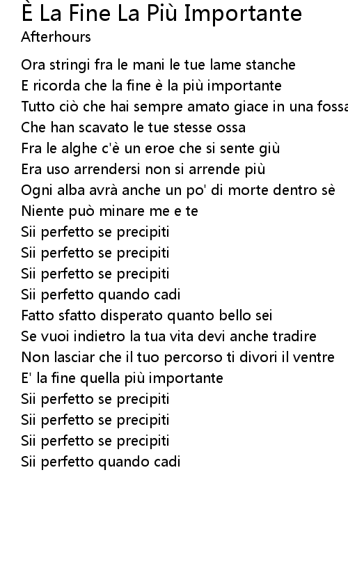 | Song | È La Fine La Più Importante |