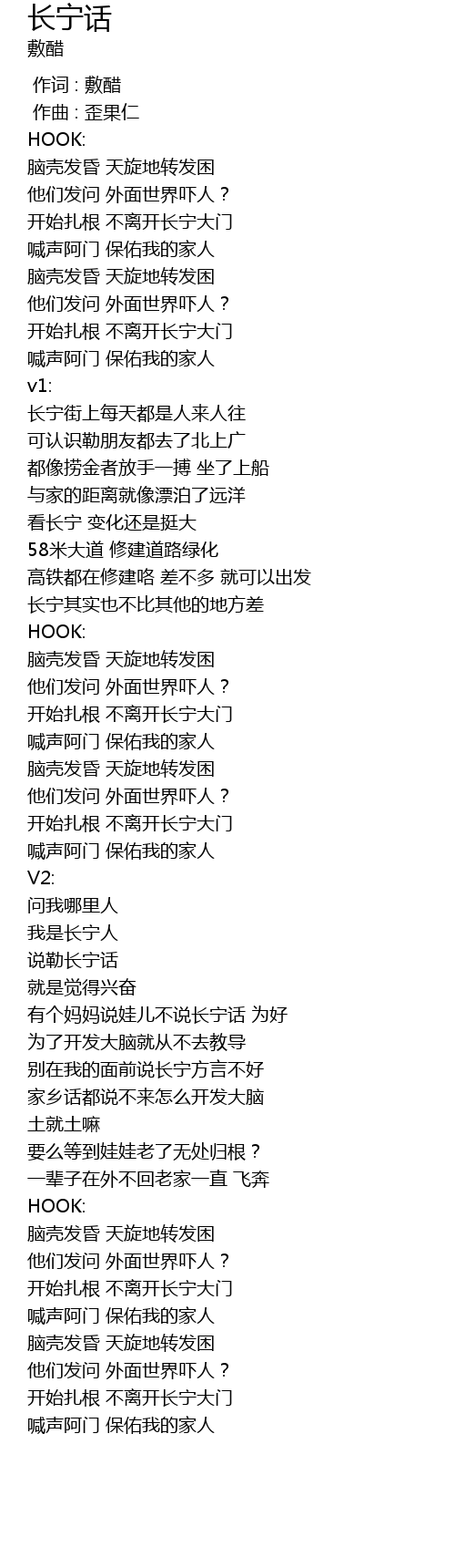 | [01:27.10] | 说勒长宁话 |
