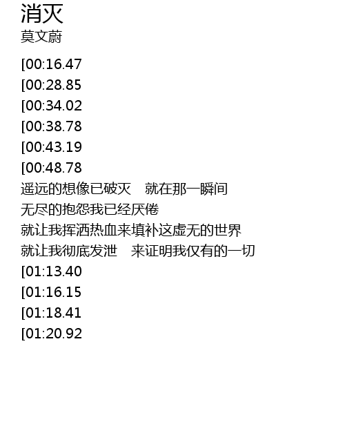 | [02:12.29][01:13.40] | 我要消灭消灭消灭消灭那时间 |