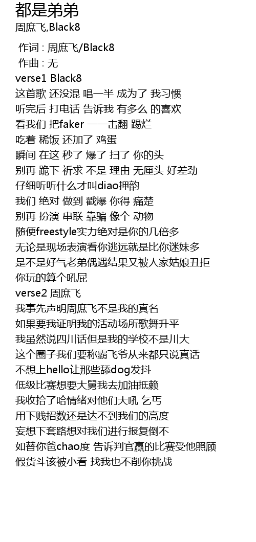 | [00:00.000] | 作词 : 周庶飞/Black8 |