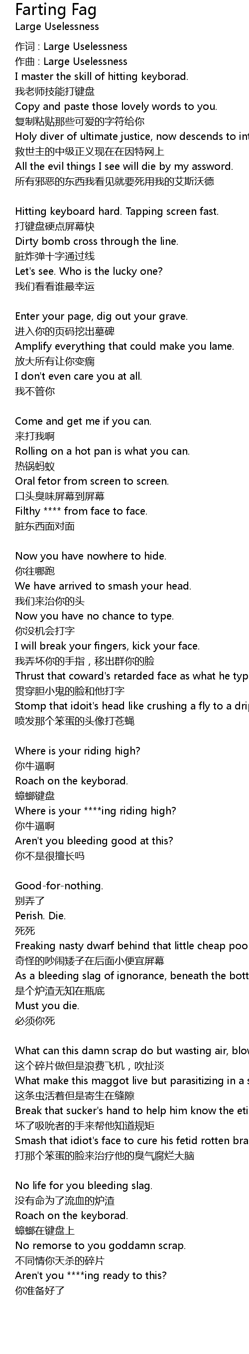 | Stomp that idoit' s head like crushing a fly to a drip of . | |