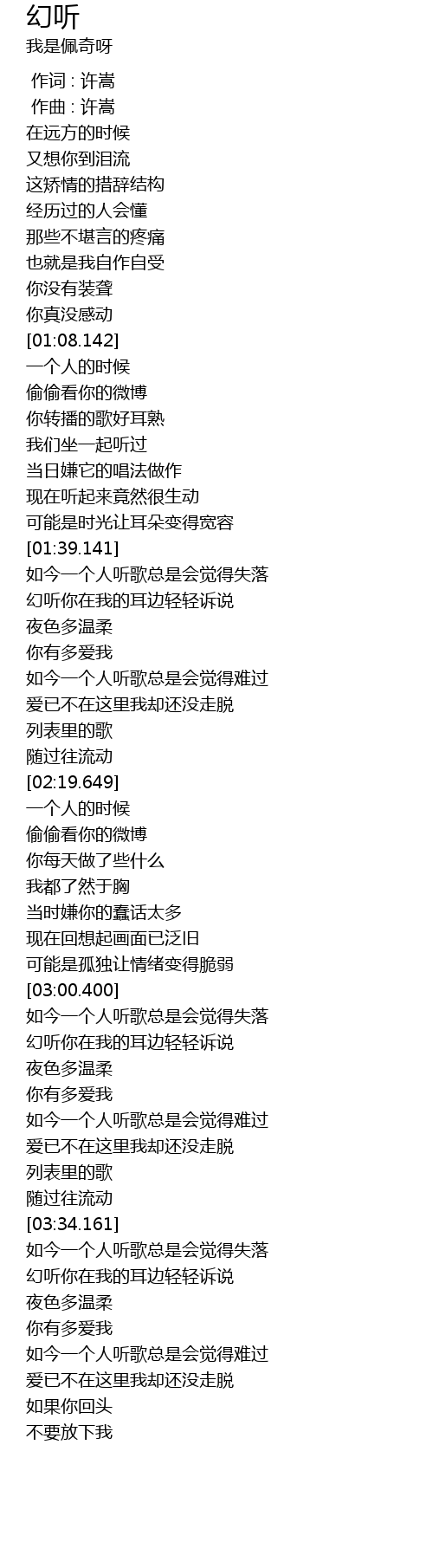 | [03:42.417] | 幻听你在我的耳边轻轻诉说 |