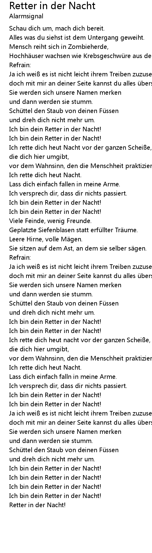 | Ich rette dich heut nacht vor der ganzen Schei e, | |