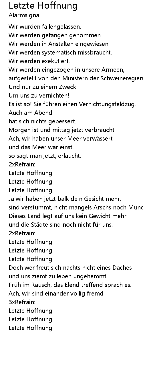 | Song | Letzte Hoffnung |