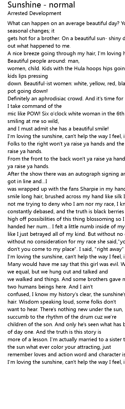like I just betrayed all of my kind. But without no delay, without more to say, without no consideration for my race she said,"yo why |