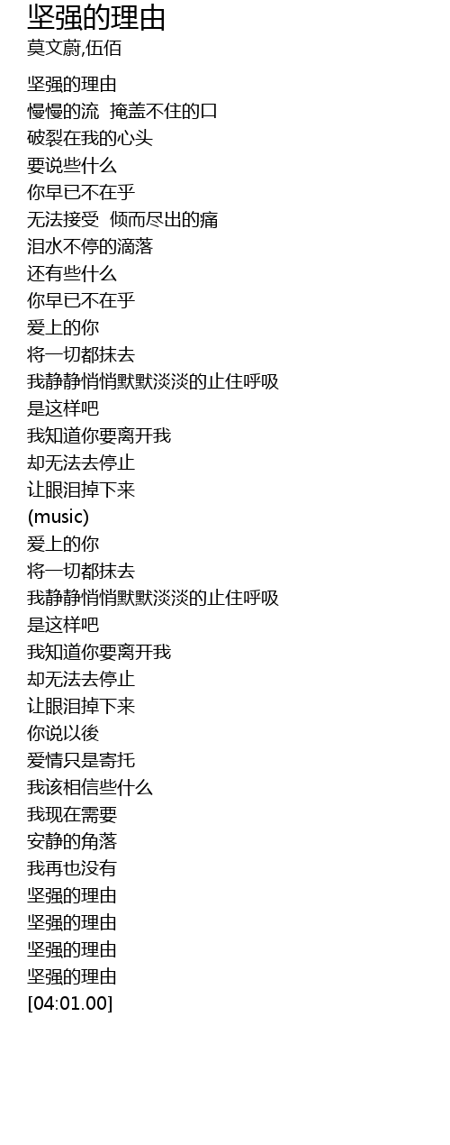 | [00:00.00] | jiān qiáng de lǐ yóu |