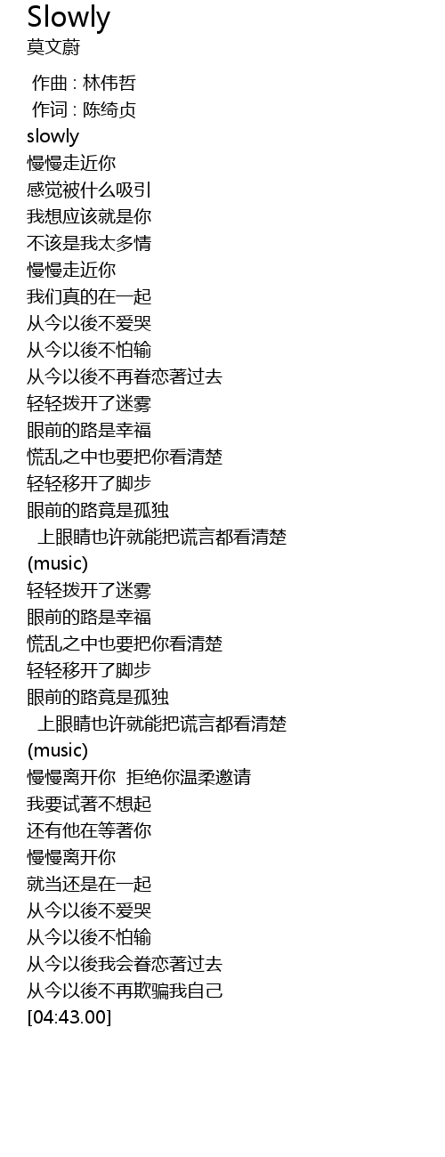 | [00:00.00] | slowly |