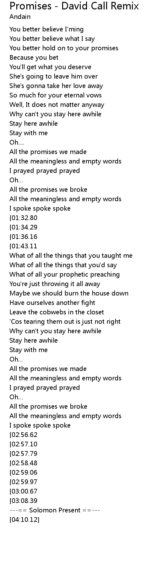 | [00:29.42] | You better hold on to your promises |