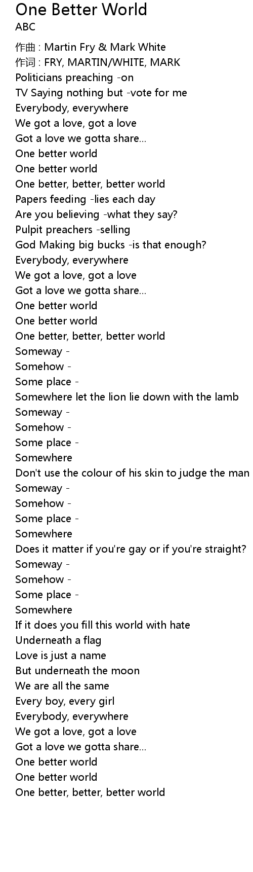 One Better World Lyrics