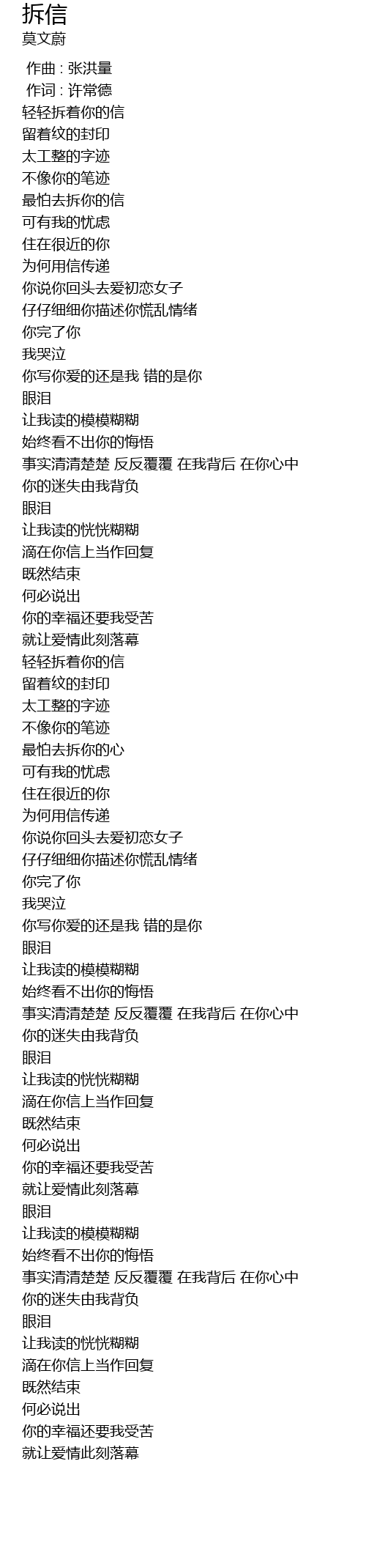 | [00:34.570] | zuì pà qù chāi nǐ de xìn |