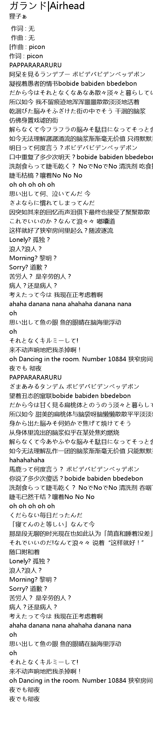 | [00:04.728] | 作词 : picon |