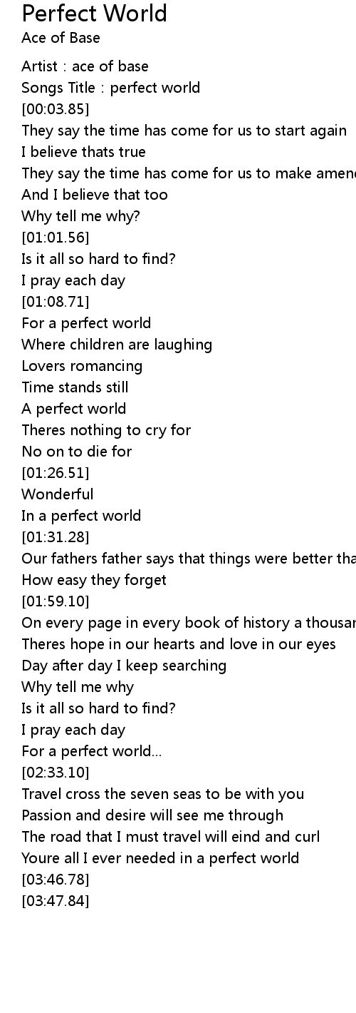 | [00:02.47] | Songs Title: perfect world |