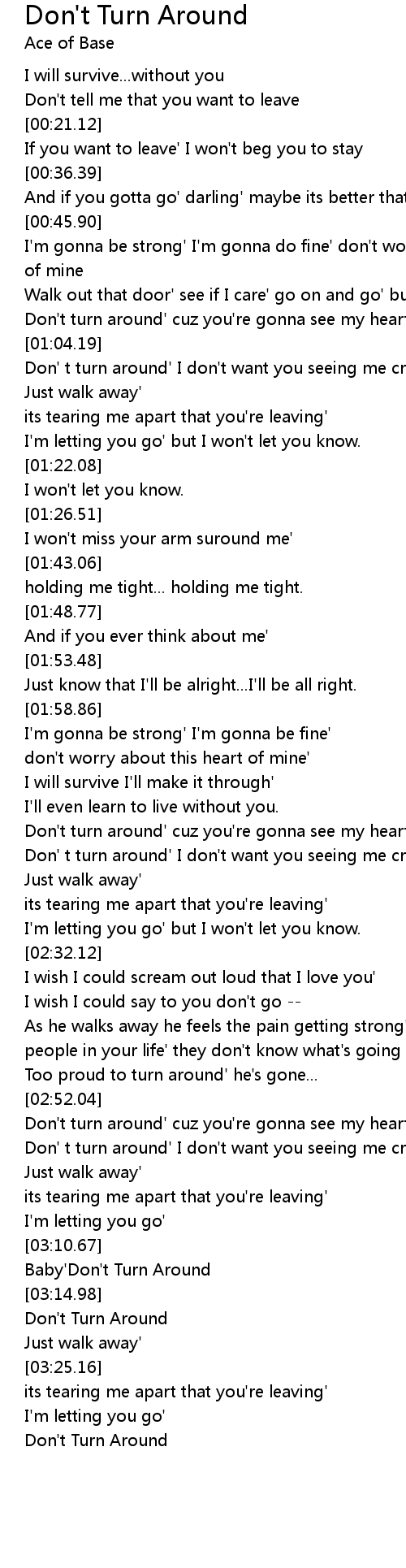 [03:12.23] Baby'Don't Turn Around