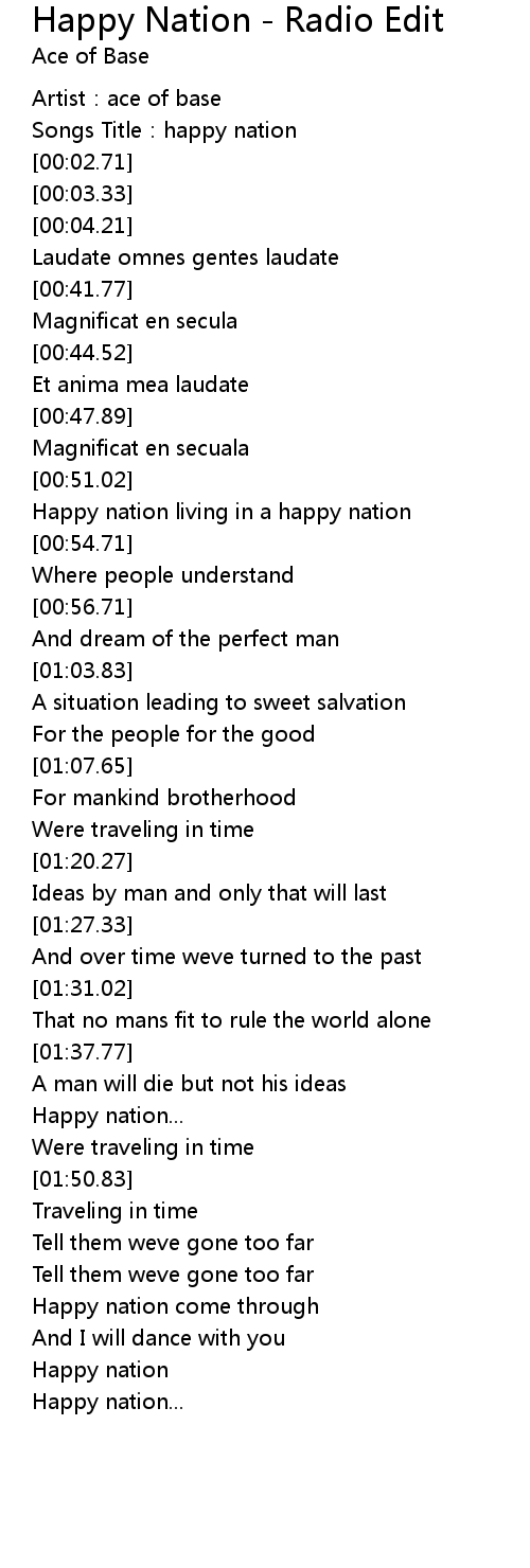 | [01:59.83] | Happy nation |