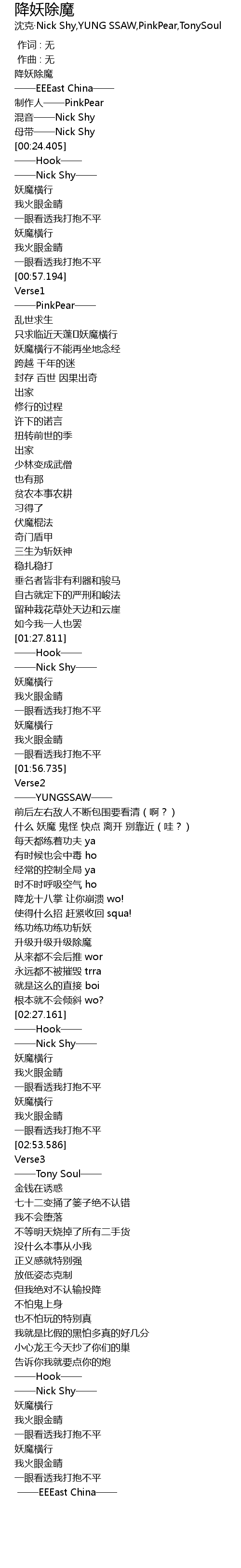 | [02:18.437] | shēng jí shēng jí shēng jí chú mó |
