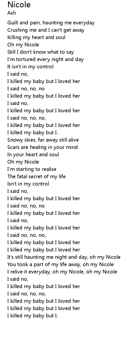You took a part of my life away, oh my Nicole |