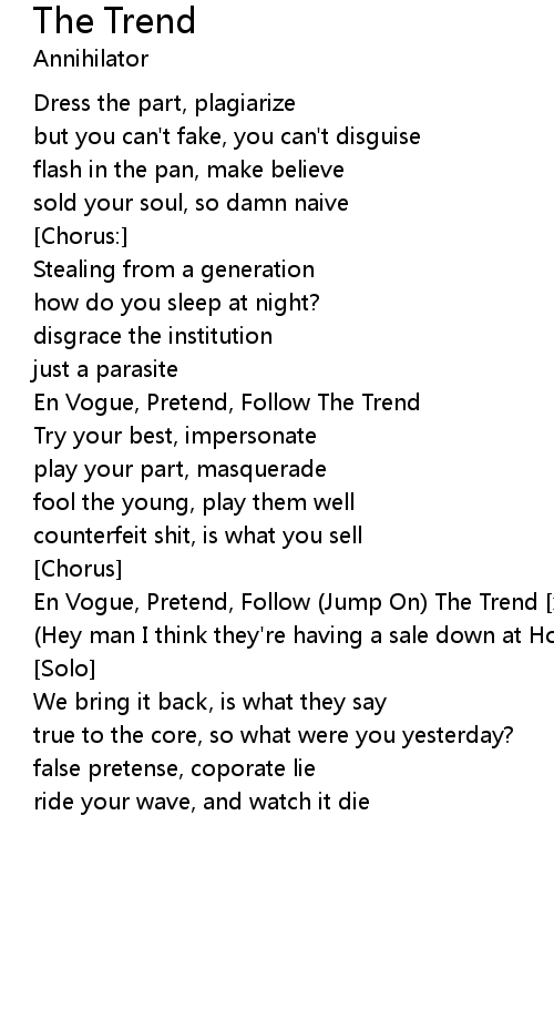 En Vogue, Pretend, Follow (Jump On) The Trend [x2] |