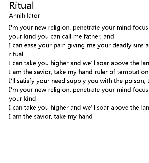I can ease your pain giving me your deadly sins and take my name in vein it's a ritual |