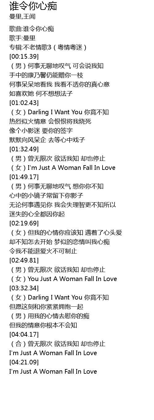 | [00:00.00] | 歌曲:谁令你心痴 |