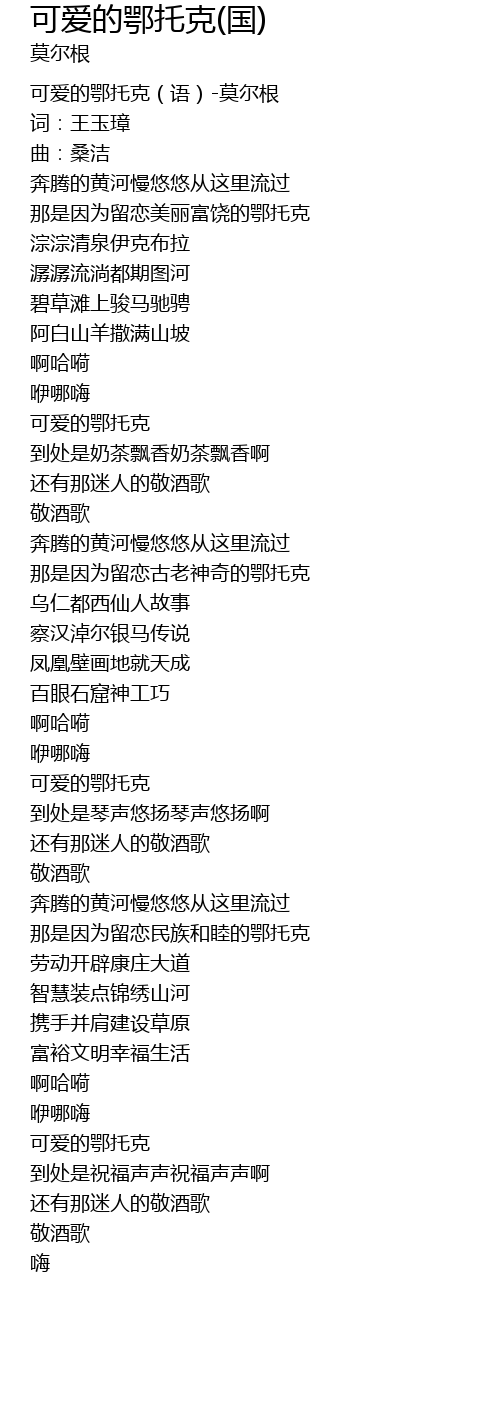 | [00:00.00] | 可爱的鄂托克(语)-莫尔根 |