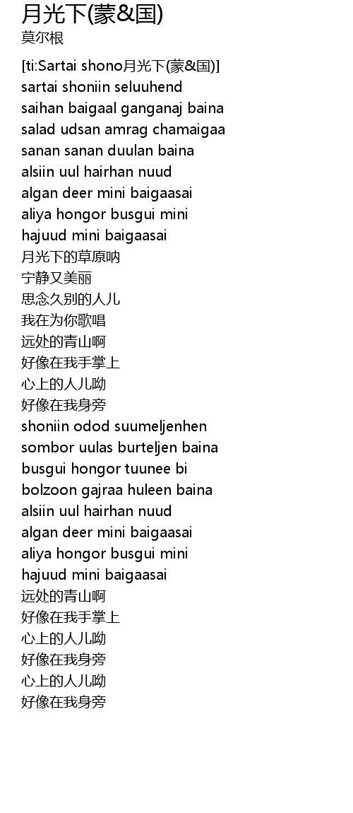 | [ti:Sartai shono月光下(蒙&国)] | |