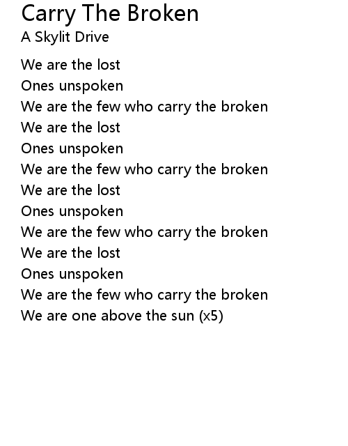 | Song | Carry The Broken |