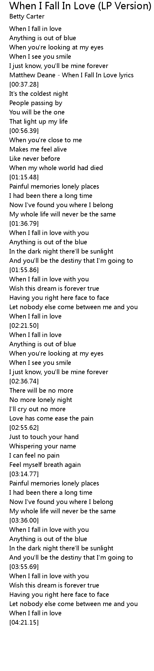 Matthew Deane - When I Fall In Love lyrics |