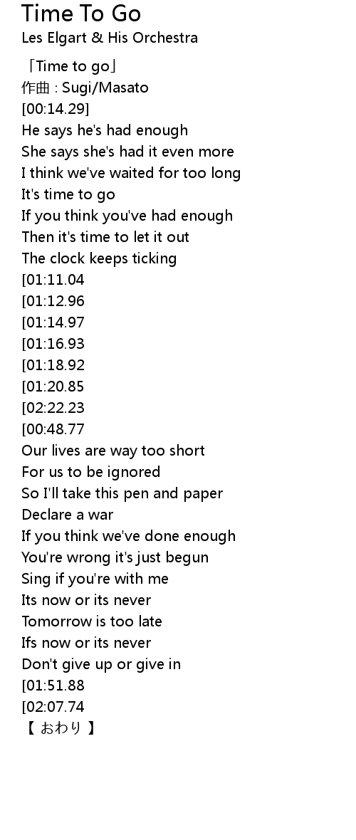 | [02:14.41][01:14.97][00:35.42] | Stop wasting time debating |