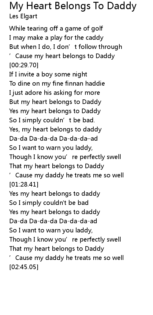 | [00:25.25] | ’Cause my heart belongs to Daddy |