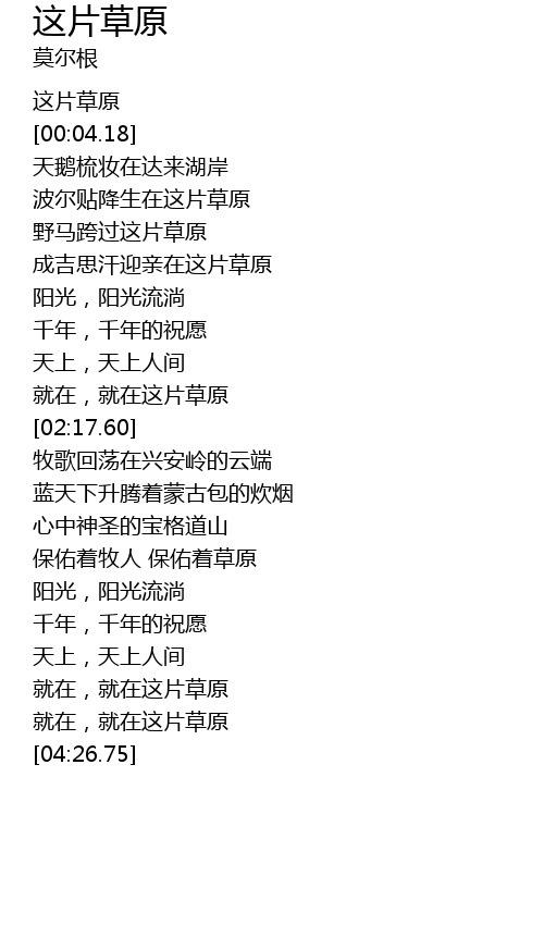 | [01:11.76] | 波尔贴降生在这片草原 |