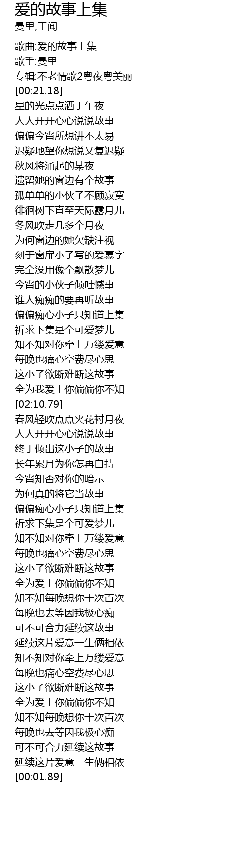 | [00:00.00] | 歌曲:爱的故事上集 |