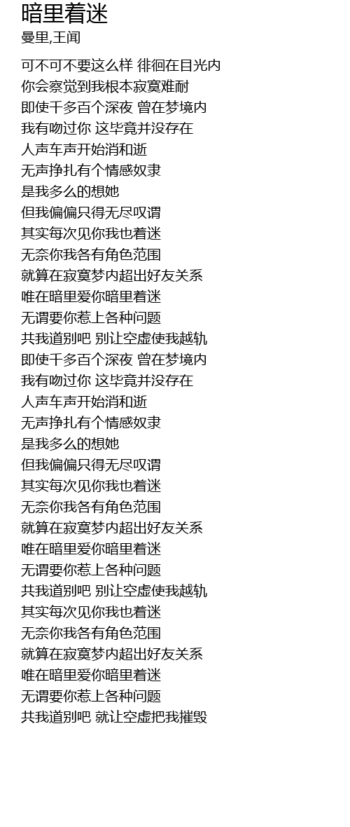 | [03:34.957] | wéi zài àn lǐ ài nǐ àn lǐ zháo mí |