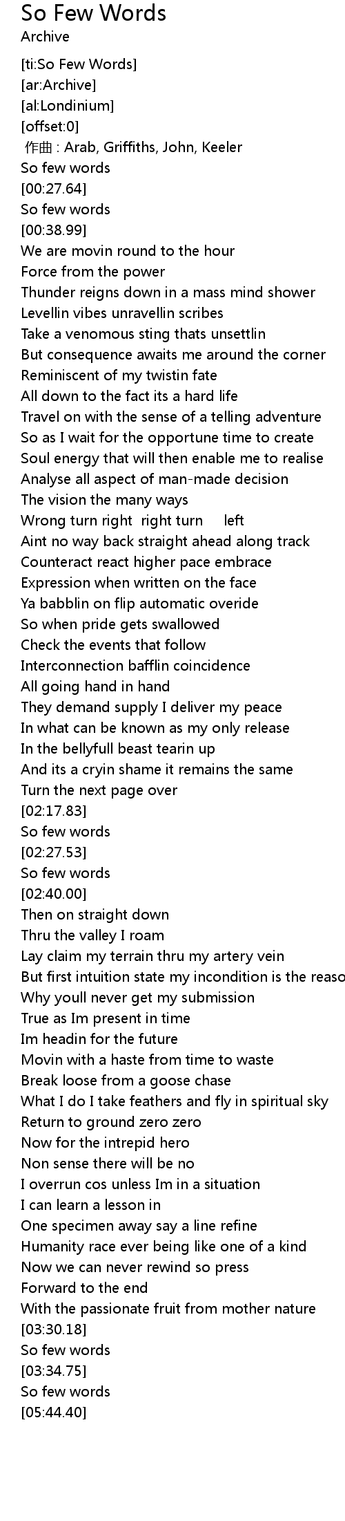 | [00:00.00] | 作曲 : Arab, Griffiths, John, Keeler |