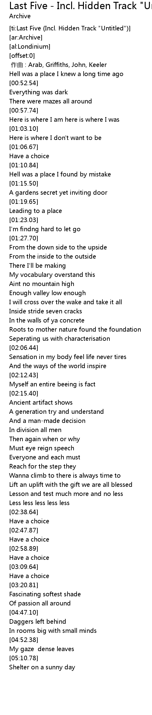 | [ti:Last Five (Incl. Hidden Track "Untitled")] | |