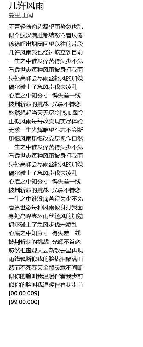 | [02:25.33] | 看透世态每种风雨披身打我面 |