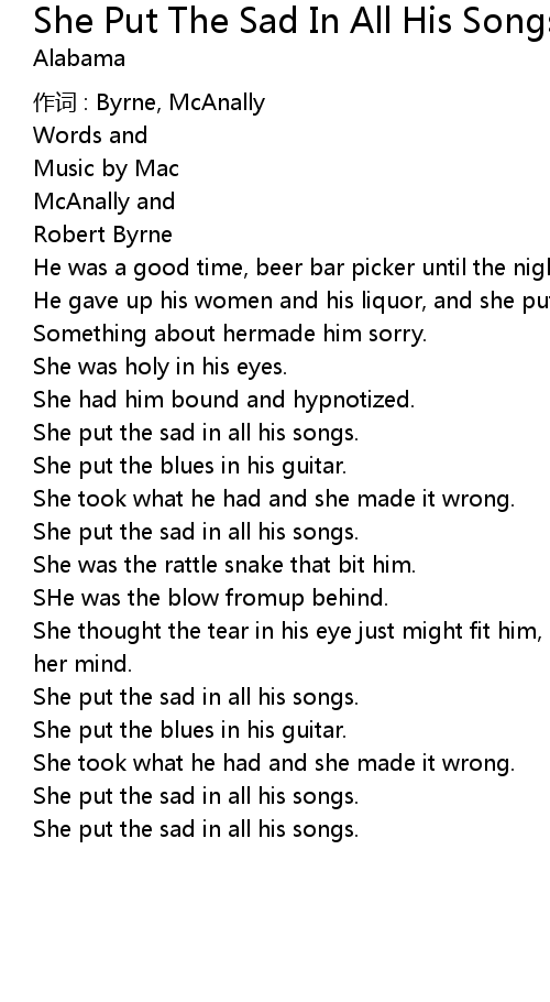 | She put the sad in all his songs. | |