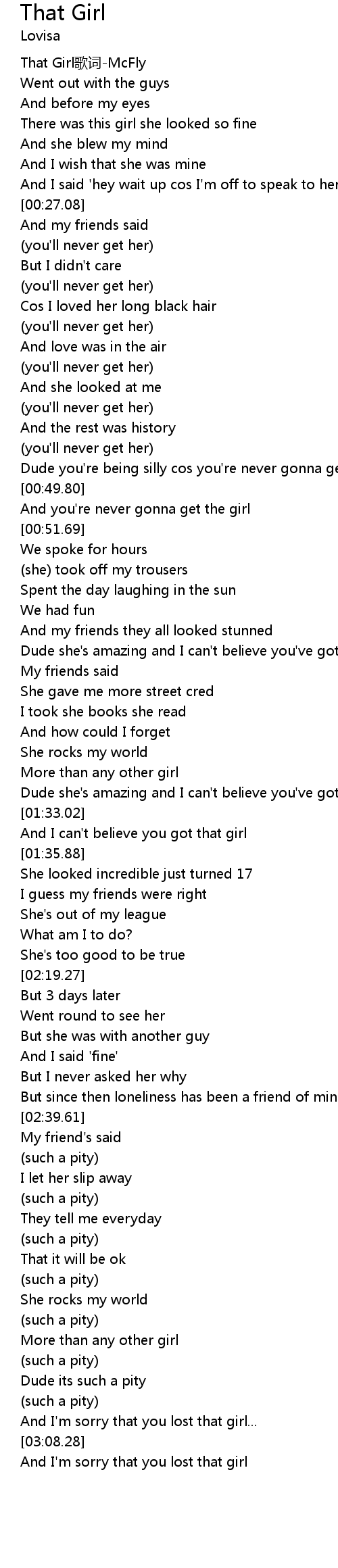 | [00:05.27] | That Girl ge ci McFly |