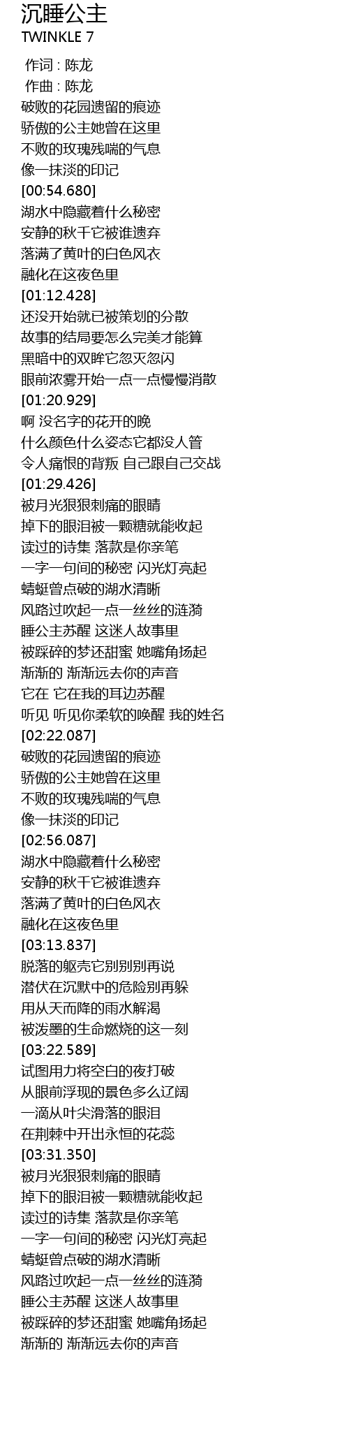 | [00:01.000] | 作曲 : 陈龙 |