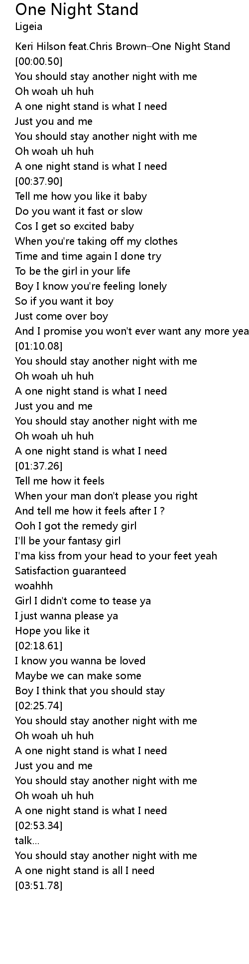 | [00:-01.00] | Keri Hilson feat. Chris Brown One Night Stand |