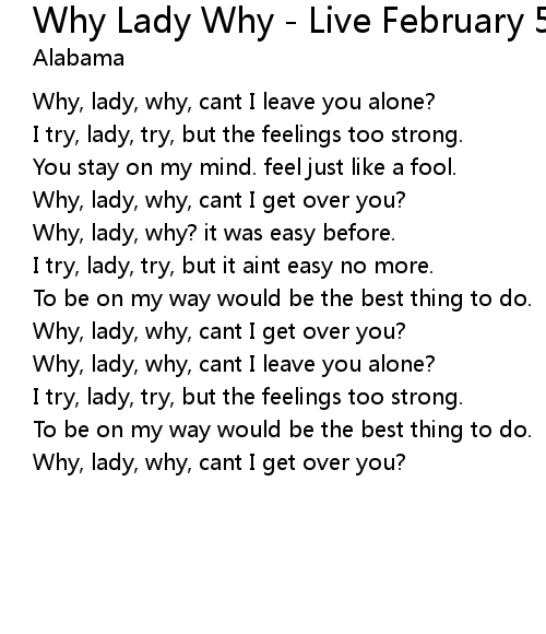 Why Lady Why - Live February 5, 1982; Florence, AL Lyrics