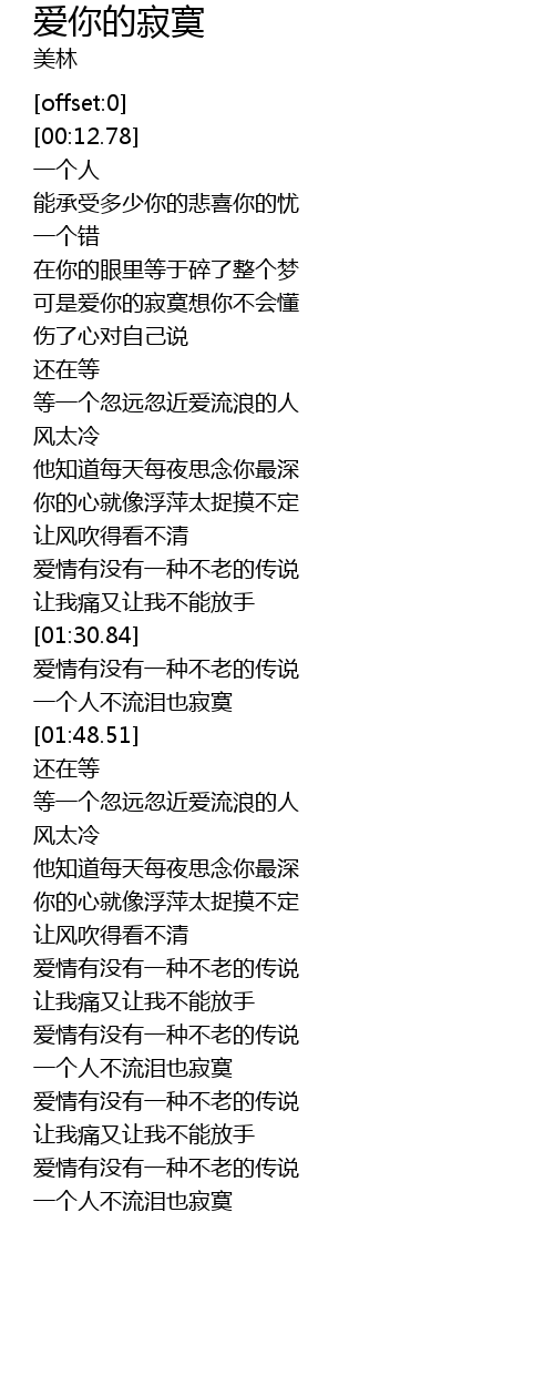 | [00:30.27] | 可是爱你的寂寞想你不会懂 |