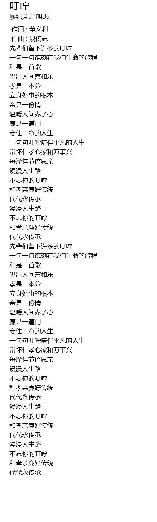 | [01:53.430] | 和孝亲廉好传统 |