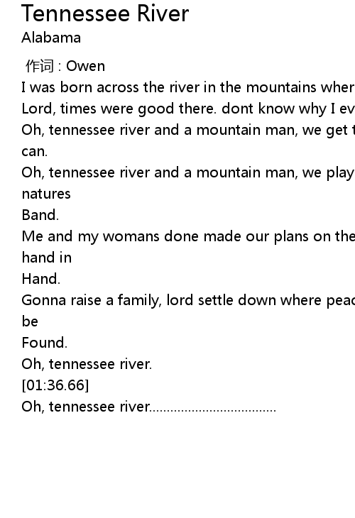| [00:54.15] | Oh, tennessee river and a mountain man, we play together in mother natures |