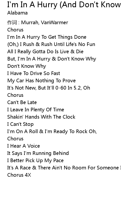 | But, I' m In A Hurry Don' t Know Why | |