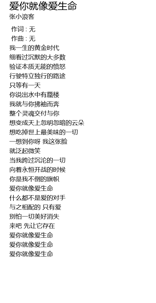| [01:43.650] | ài nǐ jiù xiàng ài shēng mìng |
