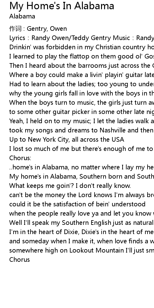 | ..home's in Alabama, no matter where I lay my head | |