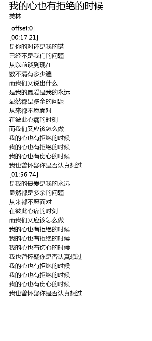 | [02:56.34] | 我的心也有拒绝的时候 |