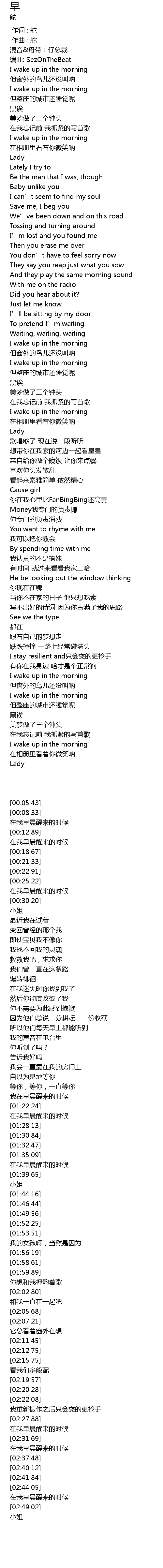 | [02:36.09] | I wake up in the morning |