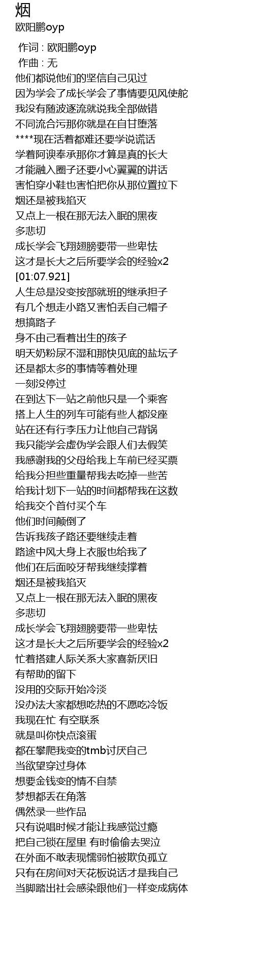 | [00:00.000] | 作词 : 欧阳鹏oyp |